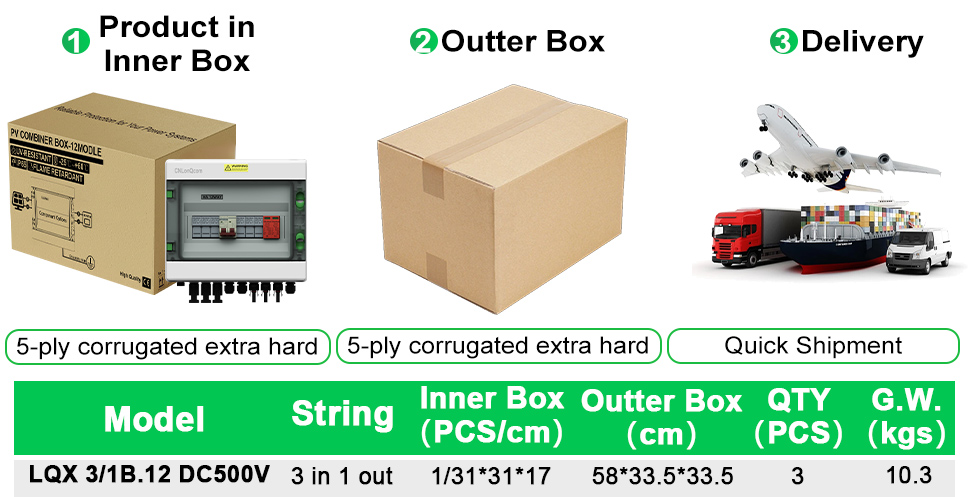 PV Combiner Box 3 v 1 out DC500V/600V/800 V efektívne chráni meniče a solárne panely pred poškodením a odosiela z ohňa.